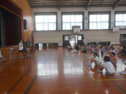 宿泊学習花背山の家に向けて、柏野小学校の5年生と交流を行いました。