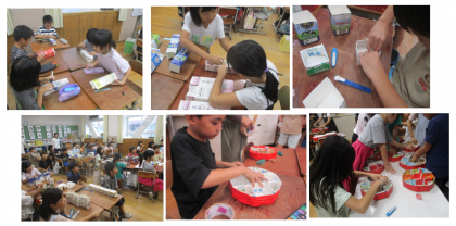 思っていた以上に難しかったようで、カッターナイフで切れ込みを入れることや、ホチキスでとめること、立体に線を引くことなど、たくさんある工程に苦戦しましたが、グループで協力して何とか作り上げることができました!