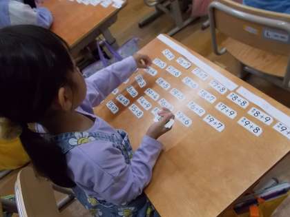 今日は、計算カードをバラバラにして、仲間分けをしてみました。