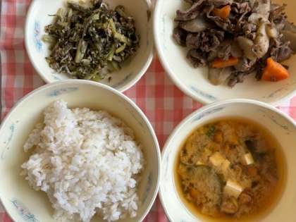 今日の和献立には、秋が旬の「ごぼう」や「なめこ」物が使われていました。