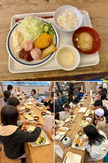 お風呂に入ってすっきりした後に,バイキング形式の夕食。たくさん活動した今日は,昨日にも増して腹ペコです。たくさん食べて,満足満足。