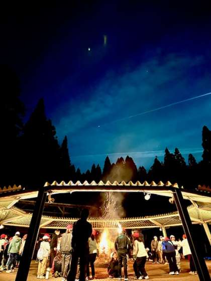 2日目の締めくくりはキャンプファイヤー。レクリエーション係さんの進行で,ゲームや歌で盛り上がります。ひとつの炎を囲んでみんなと過ごした時間,大切な思い出です。