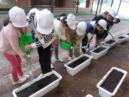 生活科の学習で、チューリップとビオラを植えました。