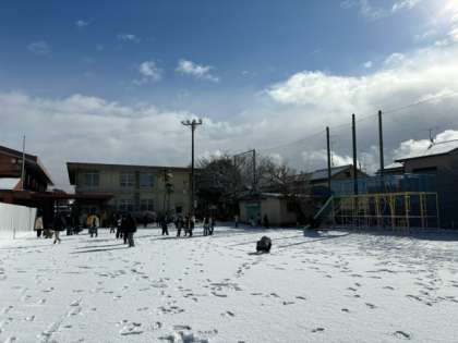 中間休み、子ども達は大喜びで雪遊びをしていました。
