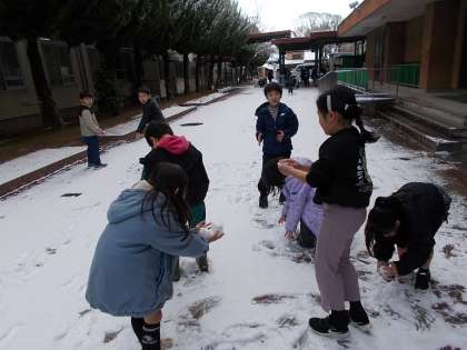 雪が降りだしたのを教室から見て、