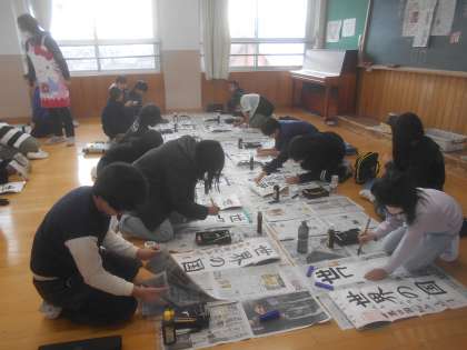 2025年、年明けの書写は、画仙紙に「世界の国」を書きました。