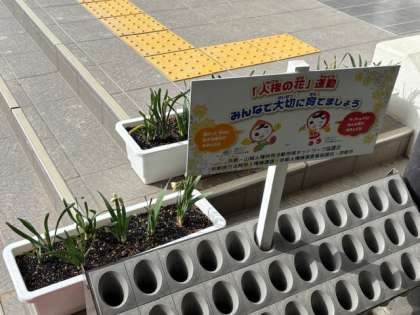 10月末に花の栽培を通して人権尊重の精神を身につけてもらうことを目的にした「人権の花」運動(京都・山城人権啓発活動地域ネット ワーク協議会主催)で、5年生が翔鸞幼稚園と北野保育園の年長さんといっしょに水仙の球根を植えました。
