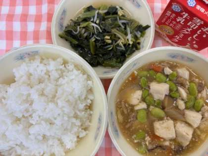 「五目どうふ」は、えだ豆の鮮やかな緑色や、やわらかいとうふの食感、しいたけの旨味など、五感を使い味わっていただきました。