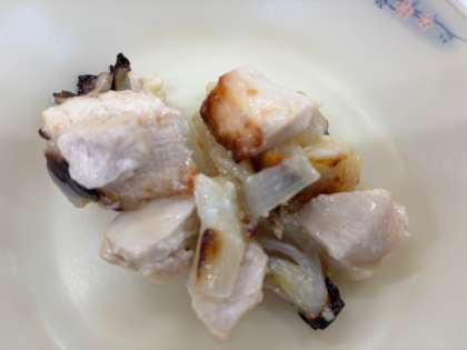 「鶏肉のゆず塩焼き」は、鶏肉をゆず果汁に30分ほど漬けこんでから、スチームコンベクションオーブンを使って焼きました。