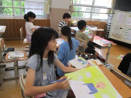 図工の学習では、忘れられない気持ちを絵にかいています。