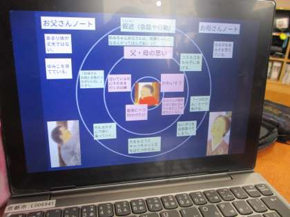 国語科の学習では、お父さんやお母さんがゆみこに対して思っていることについて、シンキングツールを使って考える学習をしています。