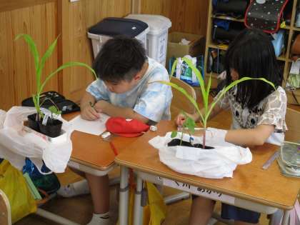 今日は翔鸞幼稚園を訪れ、苗をもらいに行きました。苗の種類が多く、地域の方もたくさん来られていました。にぎやかな雰囲気の中、子どもたちは楽しそうに苗を選んでいました。