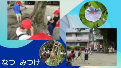 みんなで育てているあさがおの花が咲いたり、セミの抜け殻があったりと夏を見つけることができました。