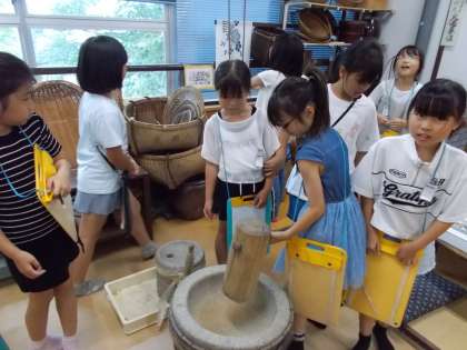 翔鸞小学校の郷土資料室のいいところは、触ってもいいことです。