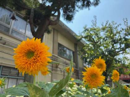 まだまだ暑いですが、時折吹く風に揺れながら、全部の花が太陽が登る東の方を向いて咲いています。