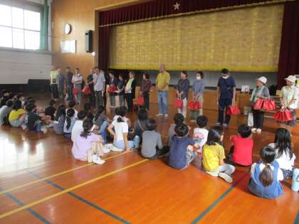4年生では地域の88歳や100歳の方におめでとうの気持ちを伝える米寿・百寿訪問をしました。