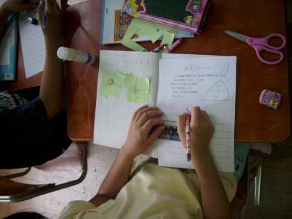 7月4日(水)5年生が合同な図形の学習で,三角形四角形の内角の和について考え話し合いました。話し合いの場では,いろいろな考え方が出てきて,活発な話し合いができました。