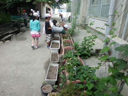 正門付近、中庭、運動場と各学年にわかれて行いました。