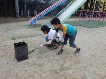 今日は、初めてする野外炊事を事前に少し練習しました。