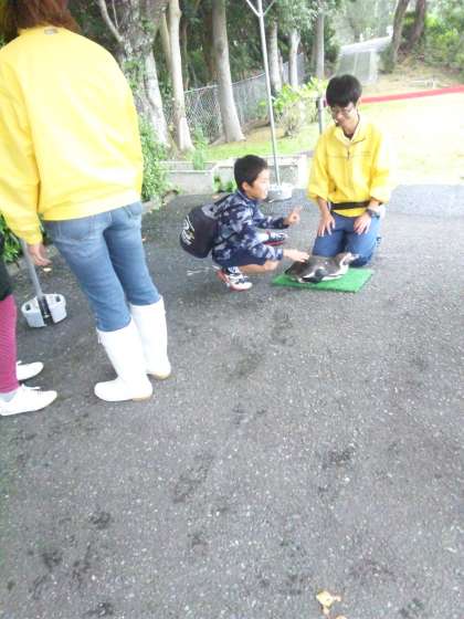 志摩マリンランドに着きました。ペンギンのたかちゃん15さいをみんなでタッチしました!