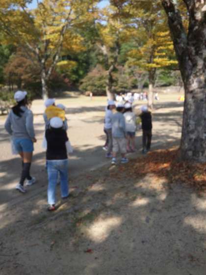 最高の秋晴れです。バス3台で宝ヶ池の子どもの楽園、宝ヶ池に来ました。縦割りでラリーをします。