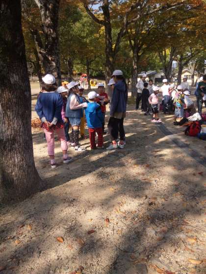 縦割りでみんなで遊んでいます。広場でかくれんぼをしたり、遊具であそんだりとみんなで仲良くあそんでいます。