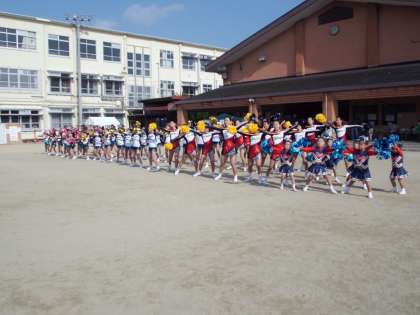 午後からの運動場では、いつも体育館で練習しているチアダンスSHOOTの演技もあり
