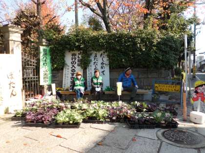 もちつき大会と並行して,正門前では葉ぼたんの販売が行われています。種まきから始めて,丹精こめて育てていただいた葉ぼたんです。売り上げは,全て学校に寄付していただけます。