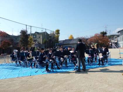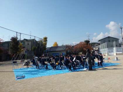 11時半からは,衣笠中学校吹奏楽部の皆さんによる演奏が始まりました。青空の下,おいしいお餅をいただきながらきれいな演奏を聴かせていただけるのは,とっても素敵な時間です。ありがとうございました。