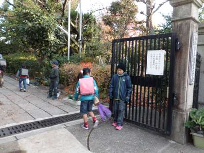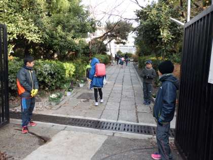 毎週月曜日に、当番を決めて、校門に立って