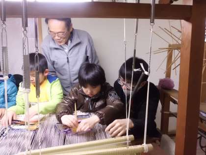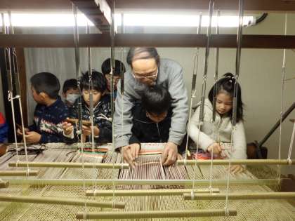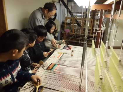 3年生が学校のすぐ近くにある「奏絲綴苑」に行って、織人の平野さん達に織り方を教えてもらいました。