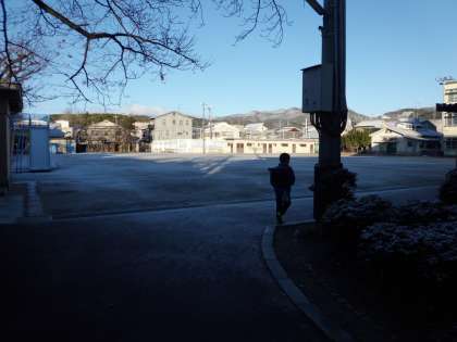 運動場も一面、うっすらと雪化粧です。