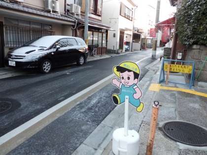正門の前は路面が凍っていました。