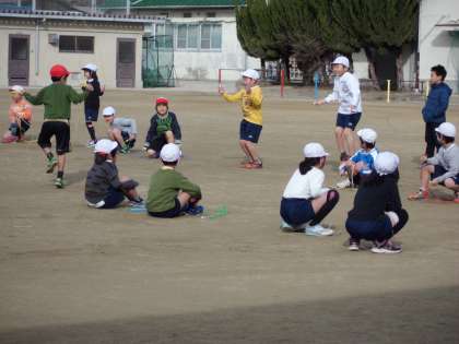 寒さに負けず、2年生が、体育でなわとびをしています。