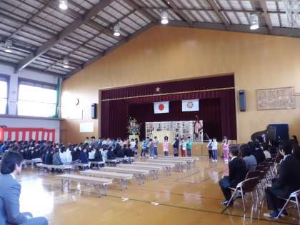 4月8日(火)に,入学式がありました。今年の1年生は46人で,「い組」「ろ組」の二つのクラスができました。お行儀よく座って,しっかりとお話を聞くことができました。