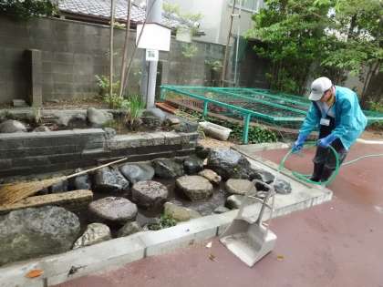 管理用務員さんが観察池をきれいに掃除してくださいました。