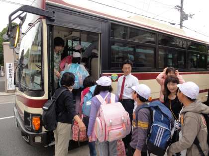待ちに待った花背山の家!いよいよ出発の日が来ました。今までの準備は万端。みんな笑顔で出発式を終え,元気にバスに乗り込みました。体調を崩している子もいますが,3日目には,全員がそろいます。はてさて,4日間,どんなドラマが・・・楽しみです。では,「行ってきま〜す!!」