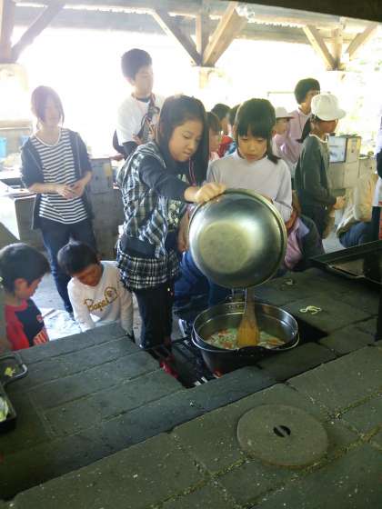 自分たちで決めたメニューです。必要な道具を出し、四苦八苦しながらの挑戦でした。周りの先生たちは、はらはらドキドキでした。