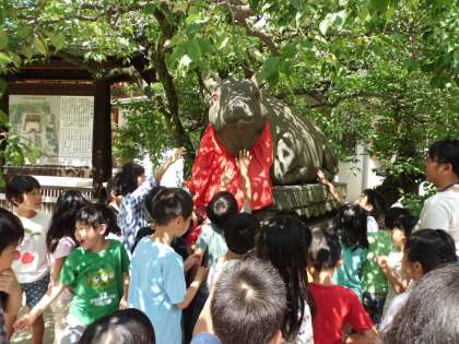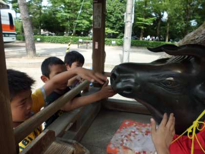 牛の頭をさすると、賢くなるらしいよ。
