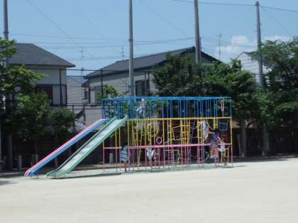 「熱っ!」と言いながらも総合遊具の滑り台を滑っている子たち。
