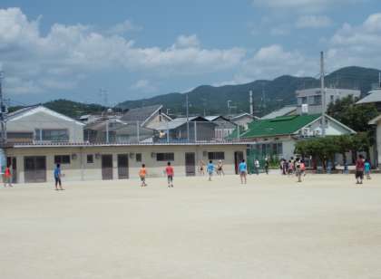 カンカン照りの運動場で,子ども達は元気いっぱいに遊んでいます。
