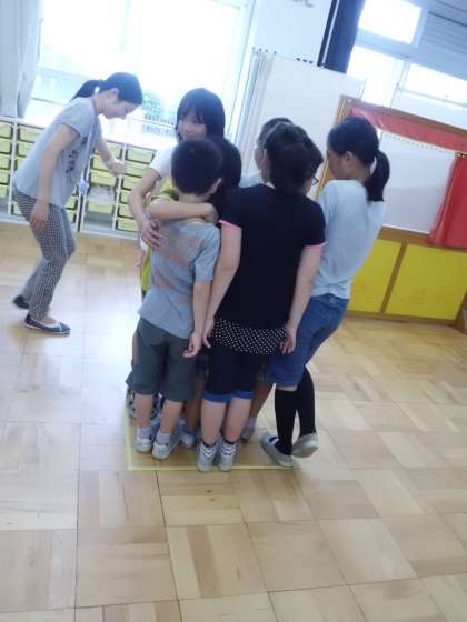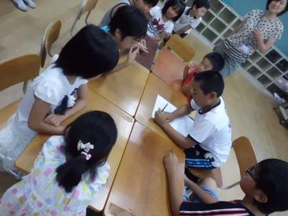 1〜6年生で作られた10人前後のなかよしグループで校内のコーナーを回り、協力してゲームに取り組んで、絆を深めました。