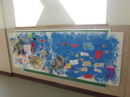 『海』がよつば学級の掲示板にできあがっています。