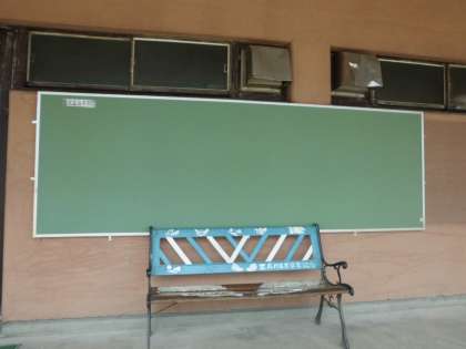 夏休みに管理用務員さんと教頭先生とで新しい掲示板