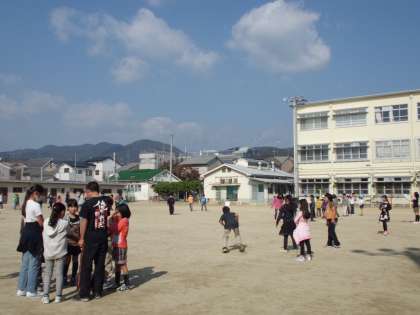 中には,長いことグループ分けのじゃんけんをしていたり,ドッジボールのコートをみんなでぐるぐる回ってかいているグループもありました。チャイムが鳴ったけど,遊べたかなあ?