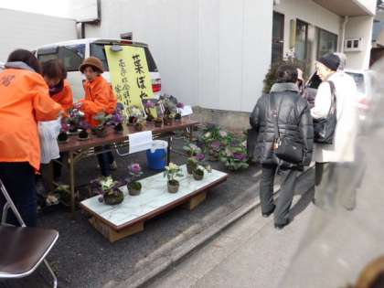 釈迦堂の入口付近では、翔鸞学区民生委員会葉牡丹部の方が育てた葉牡丹が並んで