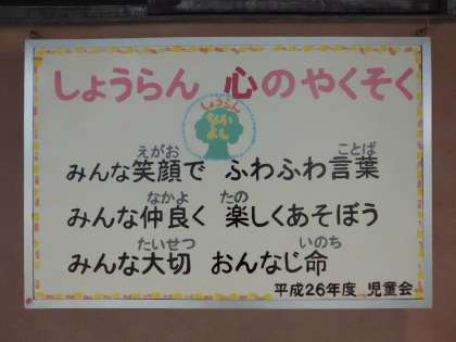 人権目標、『心のやくそく』が大きな掲示板に書かれました。