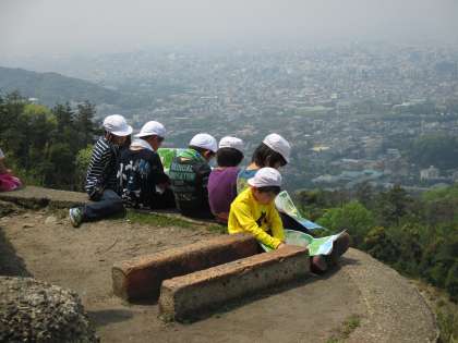頂上では,地図を片手に自分の家や学校を探したり,