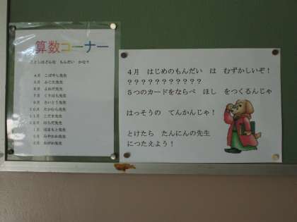 北校舎の東側と西側の掲示板には「算数コーナー」が