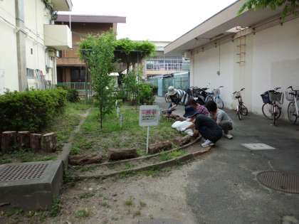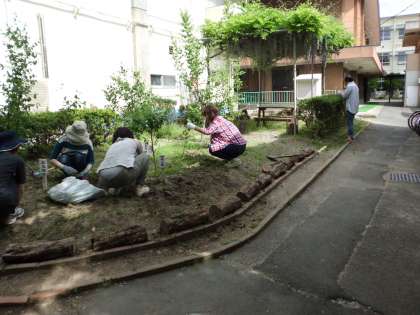 たちも参加し、教職員、地域のみなさんとで草抜きを